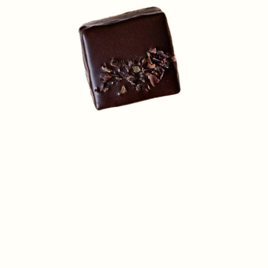 Ganache de chocolat noir végane à la menthe fraîche* et au thé vert matcha.🌿